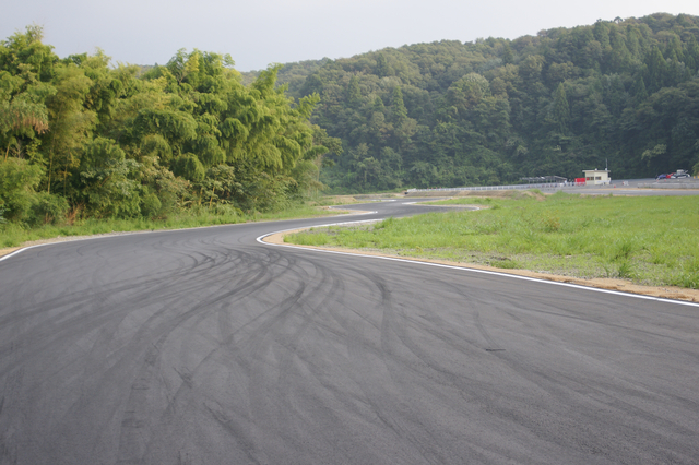 避けて後ろを確認したら、右曲がりのレーンの横にいた。
