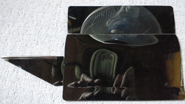 支えが左しかないうえに、画面全部を覆わせるために長くなった上側のひさし。