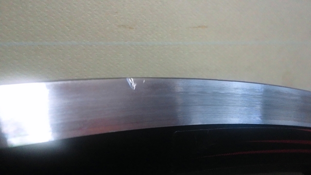 ということで、車のバンパー修理で使った耐水ペーパーで磨いてみた。