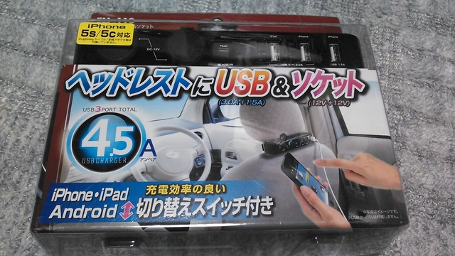 ヘッドレストUSB&ソケットは、座席を倒したときを考えてヘッドレストに取り付けるのをやめといた。