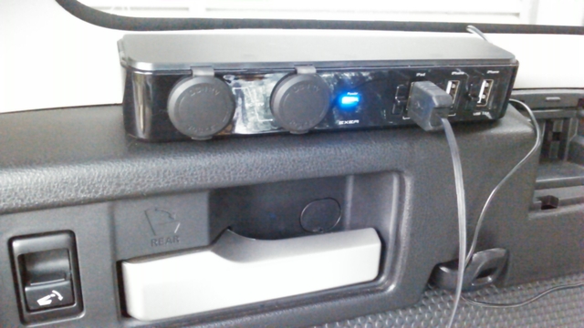 もう一つの分岐は、スイッチを挟んで買ってきたヘッドレストUSB&ソケットに。