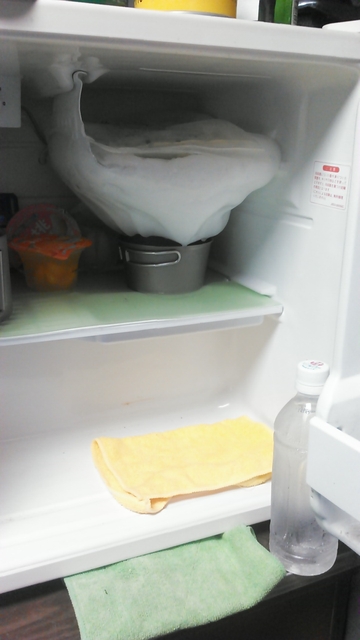 1ドアの冷蔵庫によくある、冷凍スペースの凍りつき巨大化。