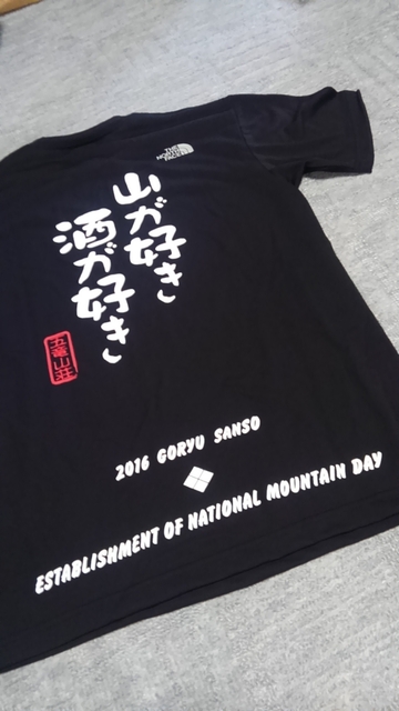 五竜山荘名物の山が好き酒が好きTシャツ。