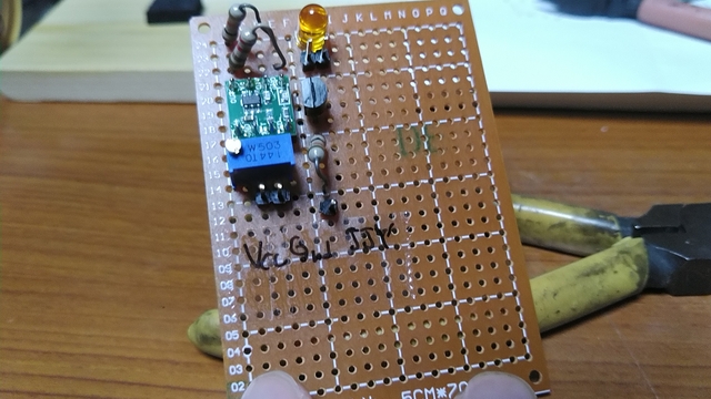 半固定抵抗をいじって、周波数が変わるのが分かった。